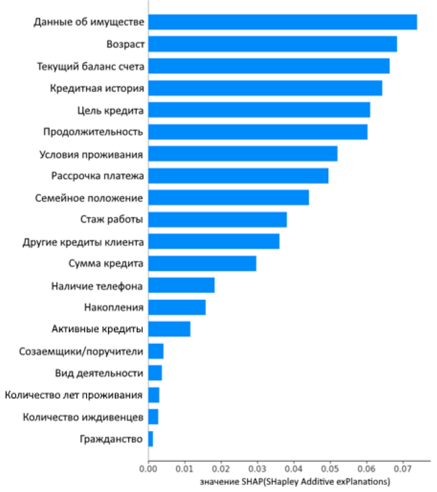 Methods and objects of research: the object of research is data on borrowers, including various socio-economic characteristics. The research methods included preliminary data processing, selection of significant features using the SHAP method, and the construction of a fully connected neural network with three hidden layers and a ReLU activation function. The Sigmoid activation function is used for the output layer. The model was optimized using Adam.