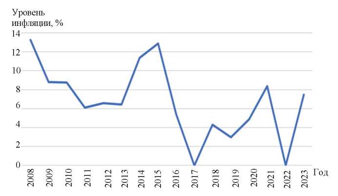 Рис. 3. Динамика уровня инфляции за 2008 – 2023 гг.