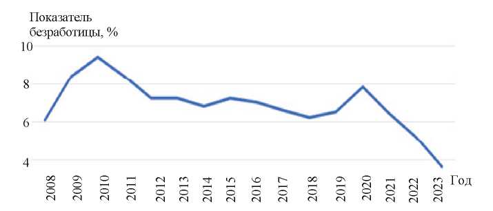 Рис. 4. Динамика уровня безработицы за 2008 – 2023 гг.