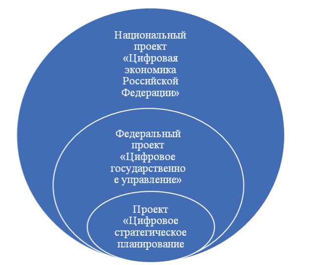Активно развивающаяся цифровая экономика в России выступает эффективной основой развития системы государственного управления. Взаимосвязь государственного регулирования и цифрового стратегического планирования реализуется с 2019 г. за счет проектов, представленных на рис. 2.
