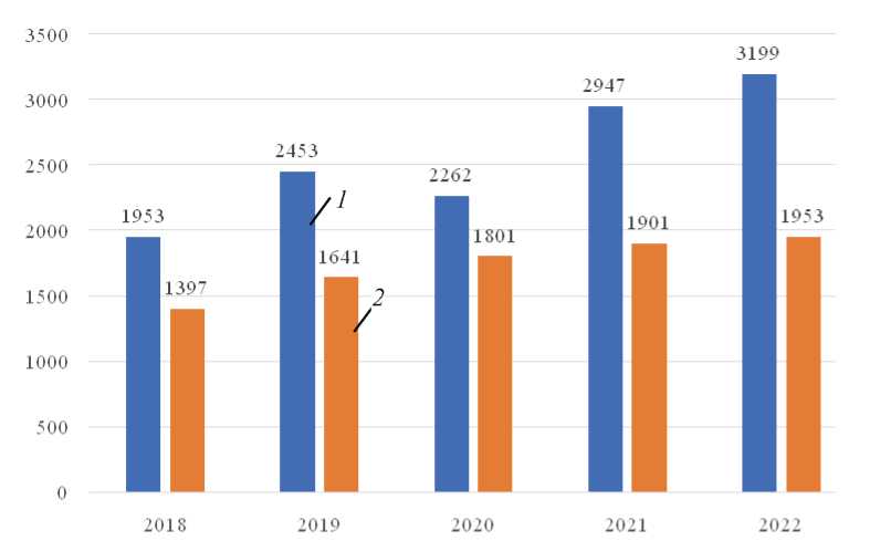 Динамика затрат на развитие цифровой экономики представлена на рис. 3 и включает внутренние затраты организаций, а также затраты населения, которое является крупнейшим потребителем цифрового контента и цифровых услуг. Статистические данные наглядно демонстрируют положительную тенденцию роста затрат на развитие цифровой экономики.