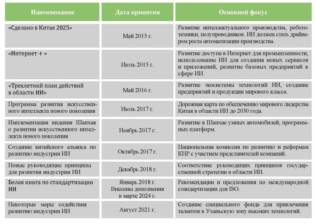 Рис. 3. Основные стратегические документы Китая, принятые в области ИИ [15]