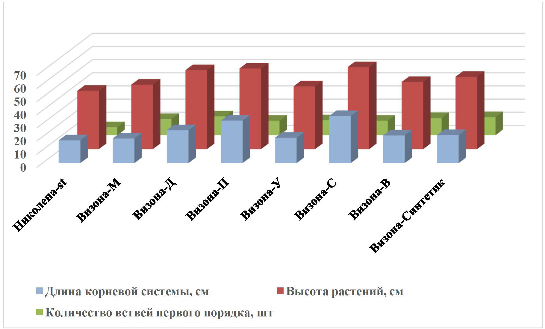 Длина корней варьировала от 17 до 37 см. Более развитая корневая система отмечена у линий Визона-П, Визона-Д и Визона-Синтетик.