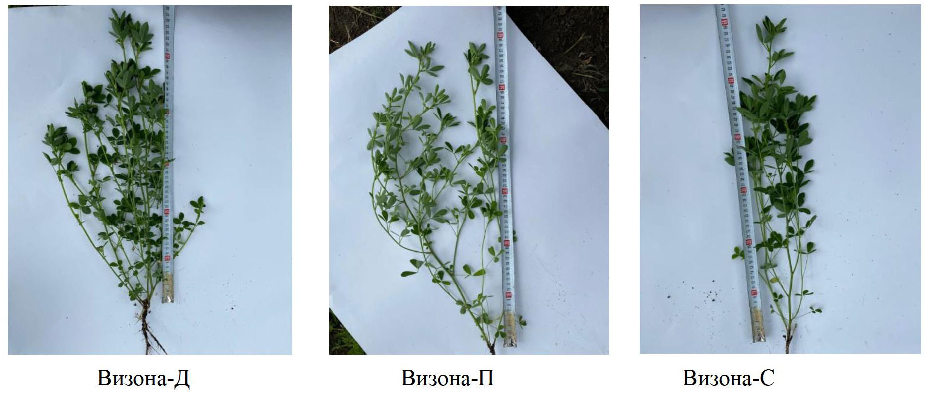 В питомнике конкурсного сортоиспытания проходили оценку восемь номеров: один сорт и три линии люцерны синей (Николена – стандарт, Визона-М, Визона-Д, Визона-П) и 4 линии люцерны изменчивой (Визона-У, Визона-С, Визона-В, Визона-Синтетик), предоставленные селекционером ВИР профессором З. С. Виноградовым.