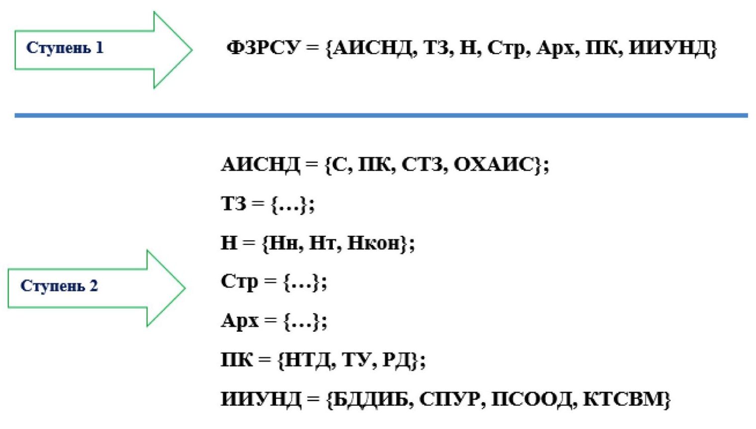 В качестве системных моделей была выбрана многоступенчатая схема теоретико-множественных моделей, описываемых в виде кортежей (рис. 4).
