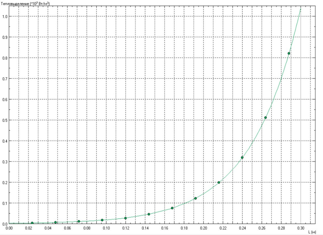 Рис. 5. Диаграмма распределения удельной мощности тепловыделения