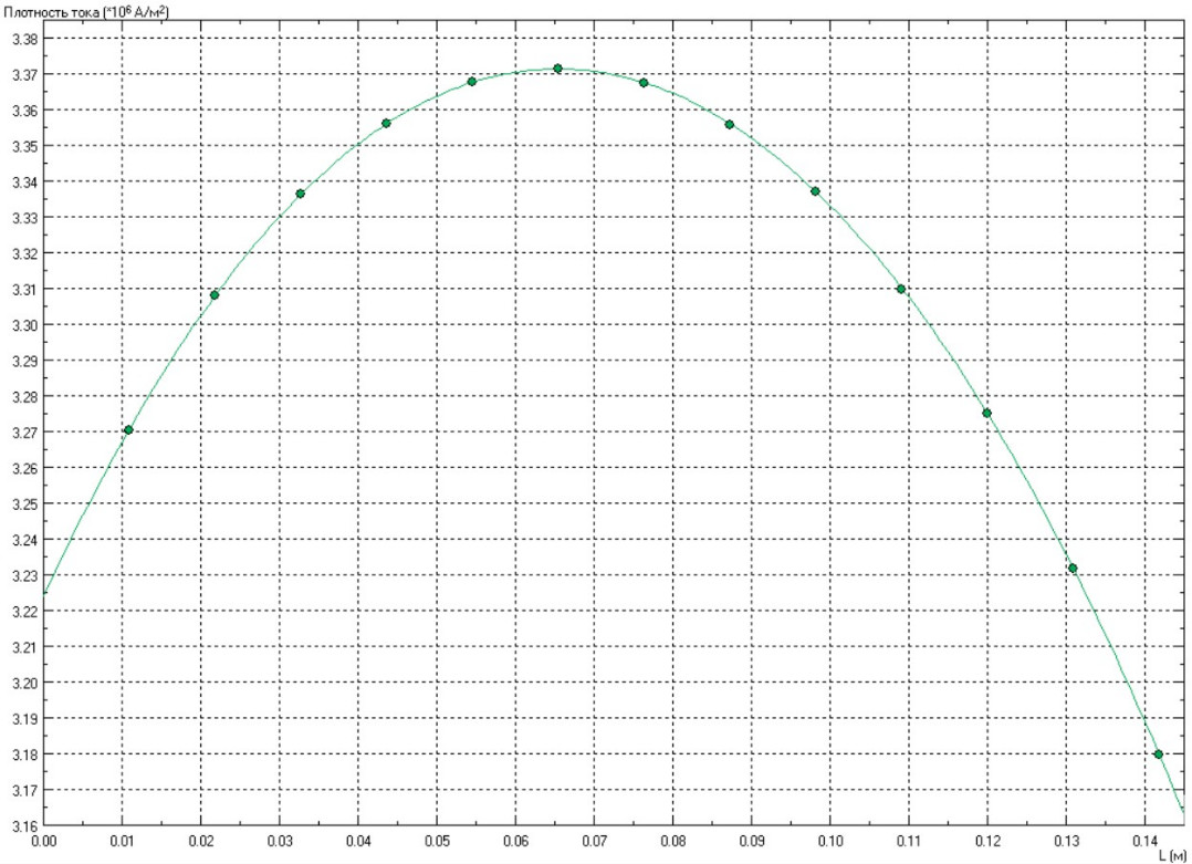 Рис. 3. Диаграмма распределения плотности тока по аксиальной координате