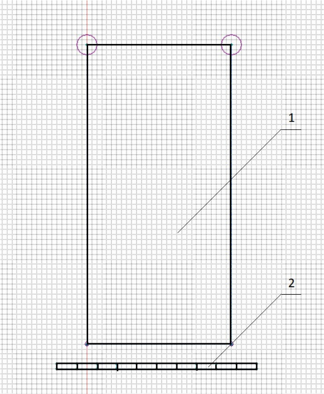 Рис. 4. Электромагнитная задача. Геометрическая модель: 1 – заготовка; 2 – витки внутреннего индуктора