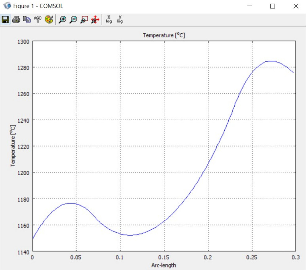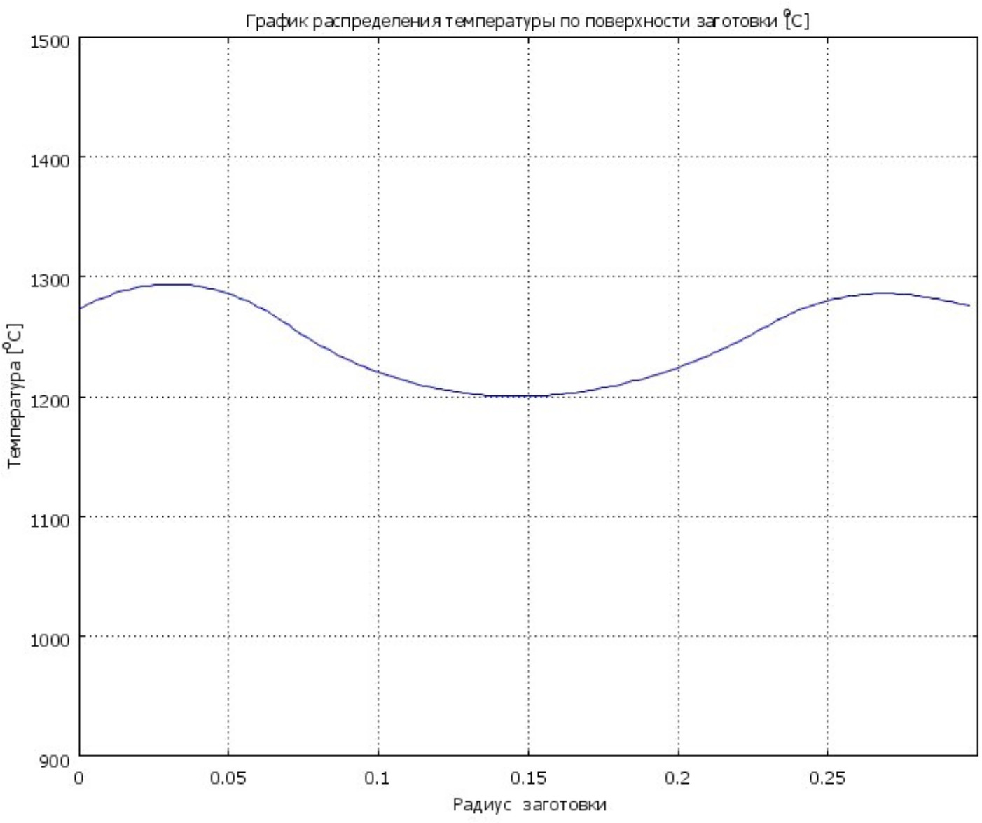 Рис. 9. График распределения температуры на торцевой поверхности заготовки