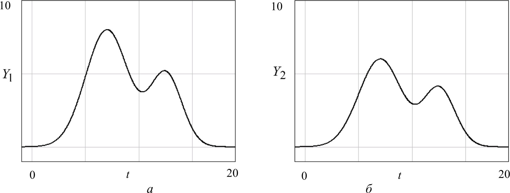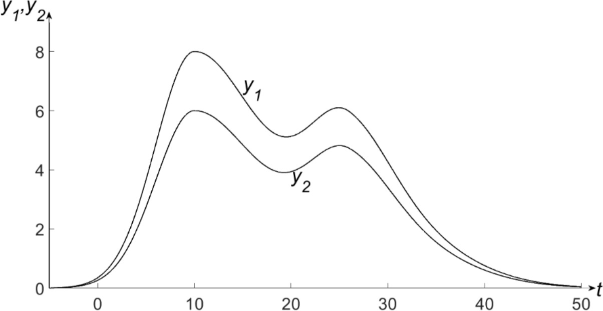 5. Fig. 4. Initial signals of the first and second detectors y1(t) and y2(t) at a resolution of W=0.65