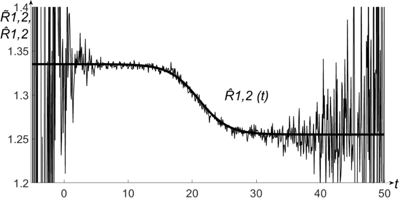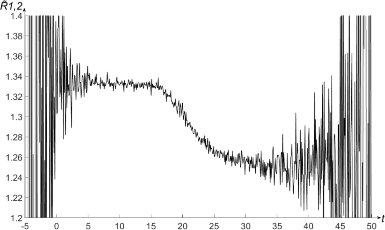 Исходные сигналы, используемые в дальнейшей обработке, показаны на рис. 4, а на рис. 5 отображено отношение этих сигналов R1,2t.