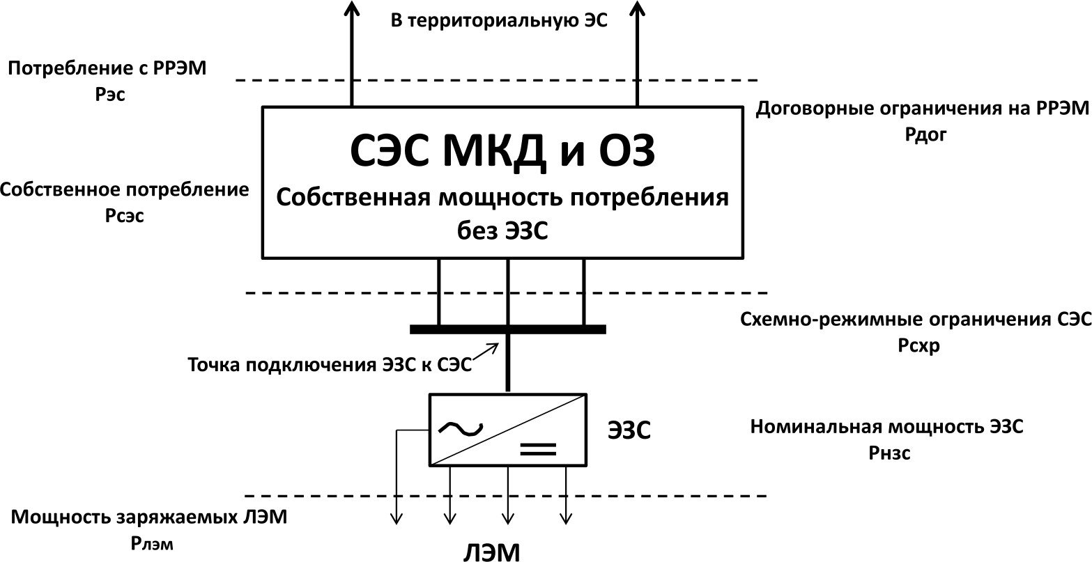 При этом в данной статье предполагается, что максимальная мощность энергопринимающих устройств , указанная в договоре на технологическое присоединение объекта, не изменяется при установке ЭЗС, то есть новая процедура технологического присоединения согласно действующему законодательству6 не требуется. Также предполагается, что не изменяются условия договора купли-продажи (энергоснабжения) в части оплаты поставляемой ЭСО электрической энергии и мощности и договора оказания услуг по передаче электроэнергии (в случае его наличия)7.