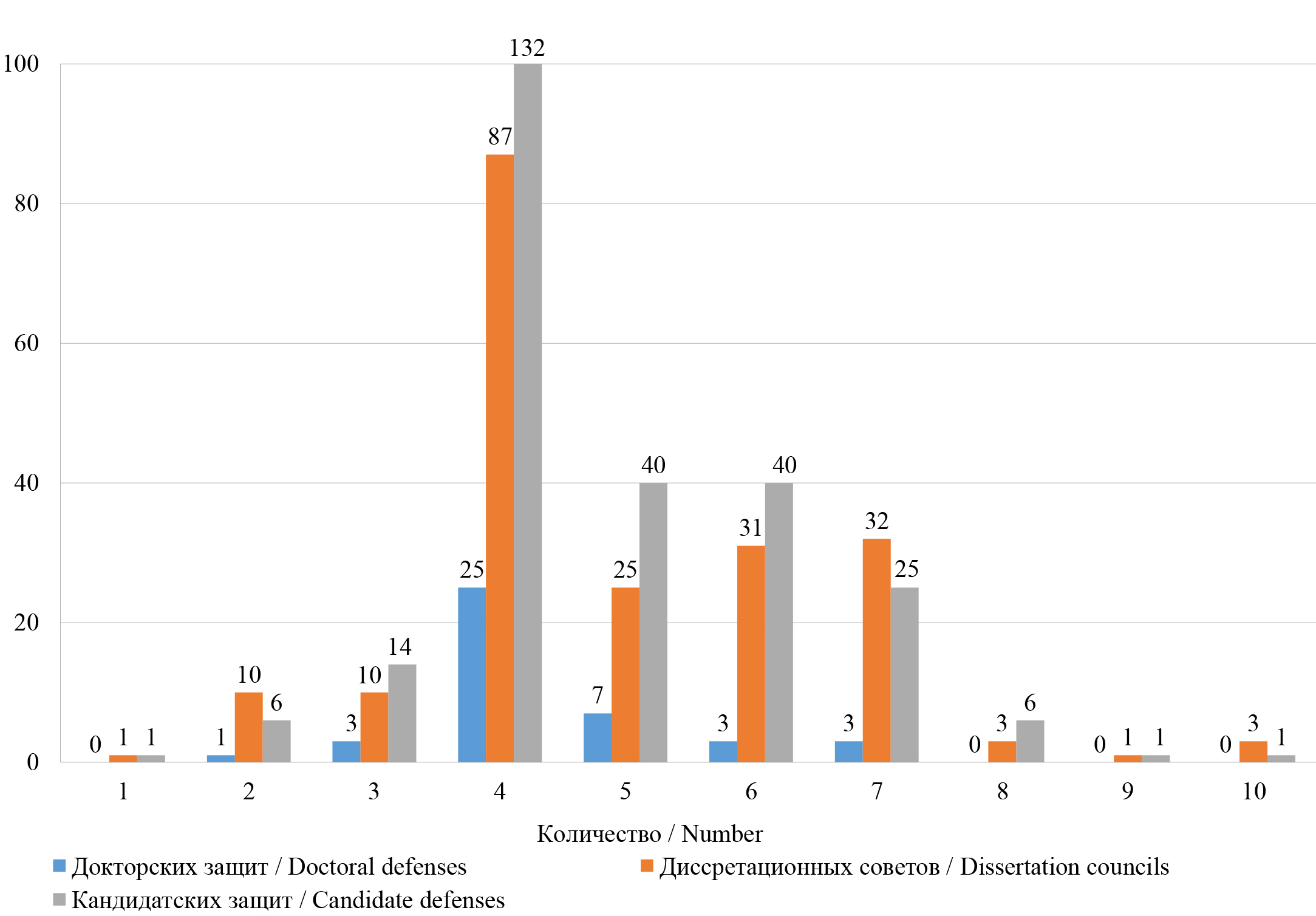 Source: Compiled by the author based on data for 2024 submitted by dissertation boards to the Ministry of Education and Science of Russia, as part of monitoring the work of dissertation boards created by orders of the Ministry of Education and Science of Russia and by organizations independently.