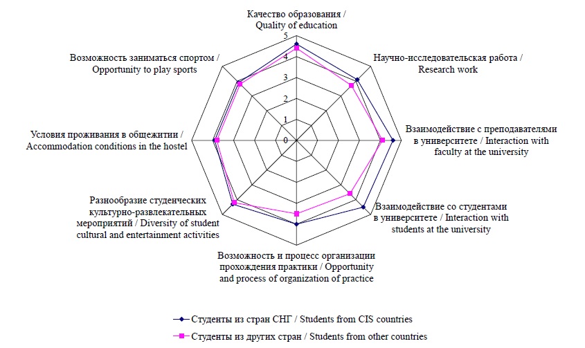 Иностранные студенты высоко ценят приобретенные в российских вузах знания, умения и навыки, видят перспективы успешного трудоустройства в родной стране по профилю получаемого образования, что свидетельствует о достаточно высоком качестве и уровне удовлетворенности образовательной деятельностью в России. При этом студенты из стран СНГ выражают больший уровень удовлетворенности, чем студенты из других стран.