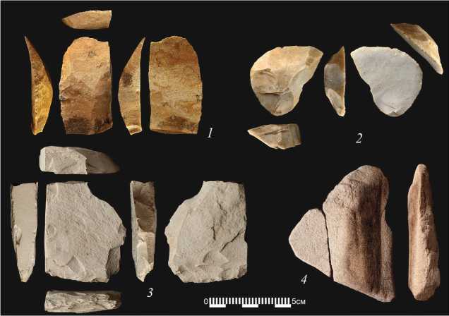 Рис. 5. Стоянка Вылыс Том 3: 1, 2, 4 – скребки; 3 – скребло-острие.