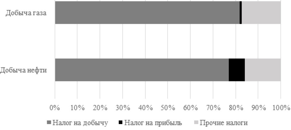 Figure 1. Structure of tax revenues in the oil and gas industry of Russia in 2021.
