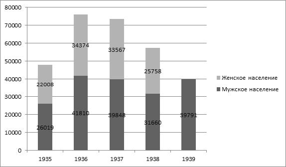Таким образом, в 1930-е гг. на Южном Урале смертность мужского населения была выше женского. Высокие показатели смертности среди мужского населения обусловлены рядом причин, во-первых, в трудовой сфере мужчины заняты в деятельности с высоким уровнем травматизма и смертности, таких как армия, тяжелая промышленность и т. д., во-вторых, преждевременным старением мужской части населения, в силу занятости на более опасном производстве. Женская смертность ниже показателей мужской, но женский организм особенно подвержен опасности в период беременности и после рождения ребенка. К тому же, занятость на стройках индустриализации и рост травматизма способствовали смертности, в том числе, и среди женщин. Наиболее высокие общие показатели смертности приходятся на 1936 г. среди как мужского населения, так и женского. Гендерная диспропорция прослеживается по результатам обеих Всесоюзных переписей населения 1926 г. и 1939 г.