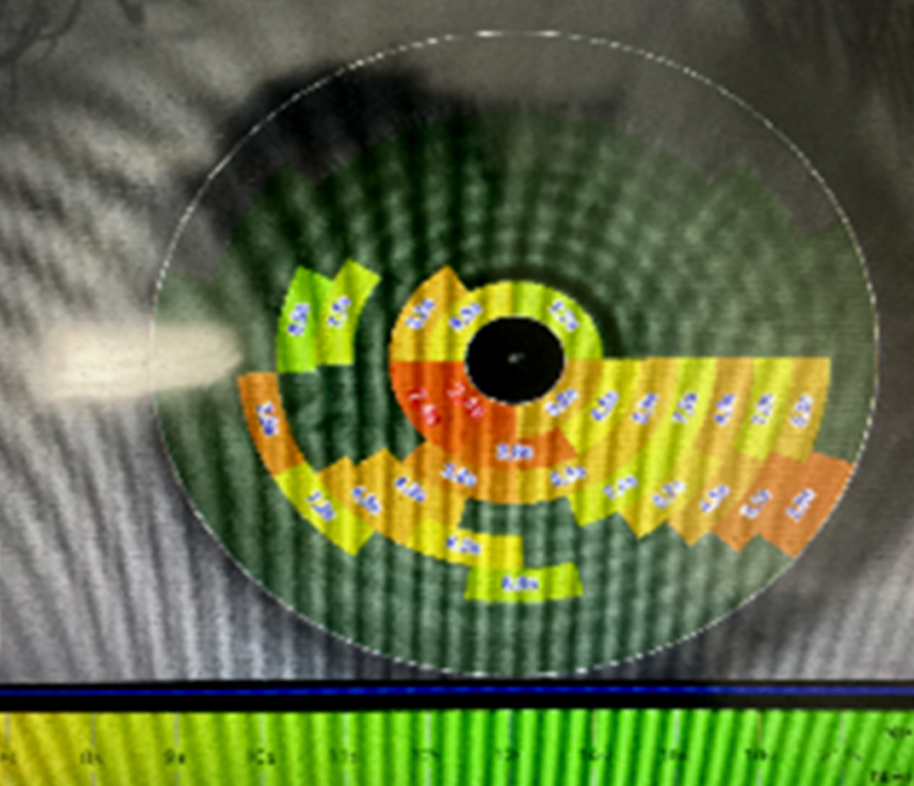 Результаты комплексной оценки состояния глазной поверхности с использованием диагностического модуля Mediworks (Китай), показали нормальные показатели по высоте стояния слезного мениска, уровню распределения липидного слоя на глазной поверхности, отсутствие потери секрета протоков мейбомиевых желез, нормальную конъюнктивальную реакцию и отсутствие прокрашивания эпителиальных дефектов роговицы за все периоды наблюдения в обеих группах.