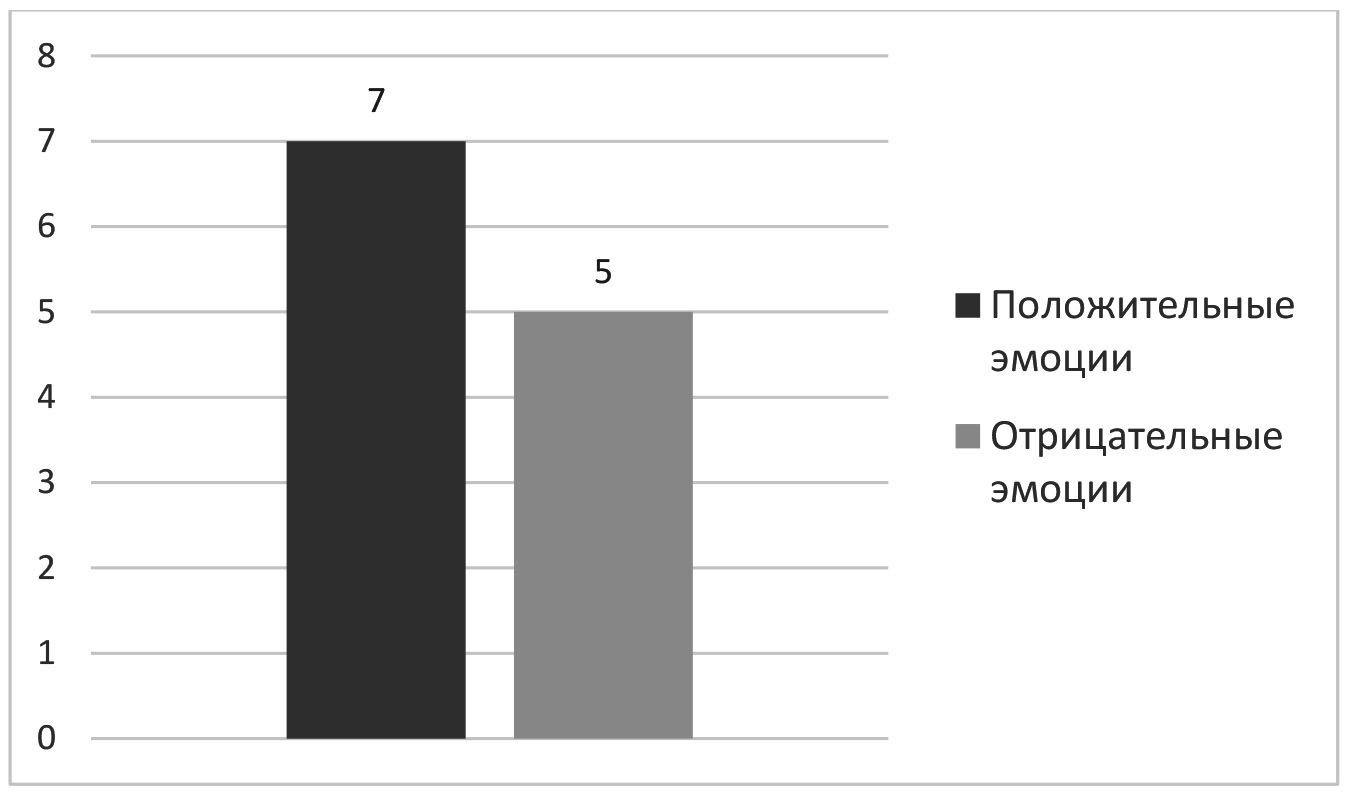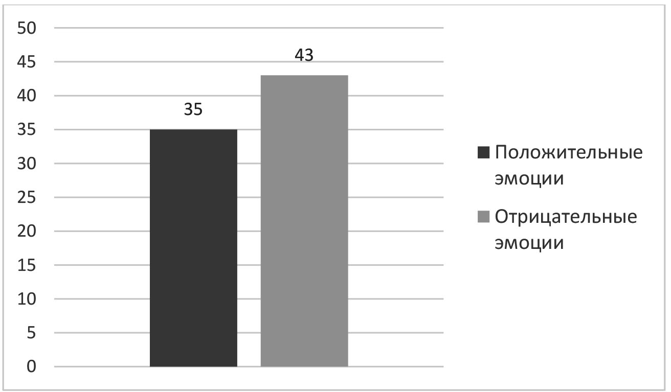 В эксперименте приняли участие 114 человек, в возрасте от 18 до 23 лет, на основании добровольного информированного согласия на участие в исследовании. Первый этап исследования заключался в определении эмоционального состояния с помощью шкалы дифференциальных эмоций К. Изарда. В основе методики заложены 10 базовых эмоций человека, которые нужно оценить по 4-балльной шкале, посчитать сумму баллов и определить коэффициент самочувствия (КС) [8].