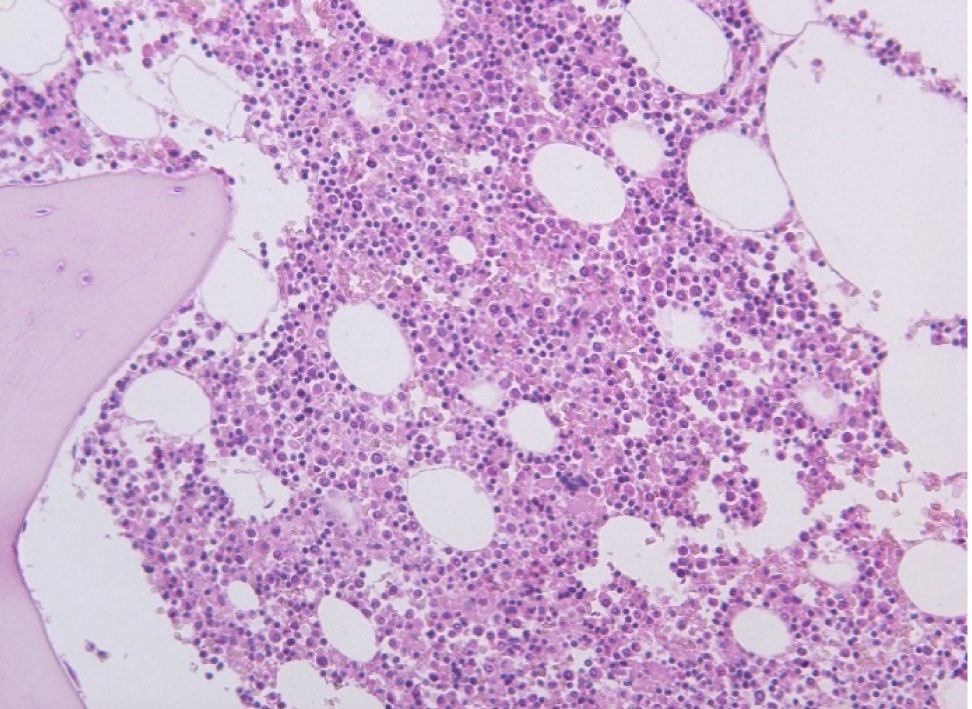 Рис. 5. Пролиферация клеток костного мозга. Окраска гематоксилин-эозин, ×200