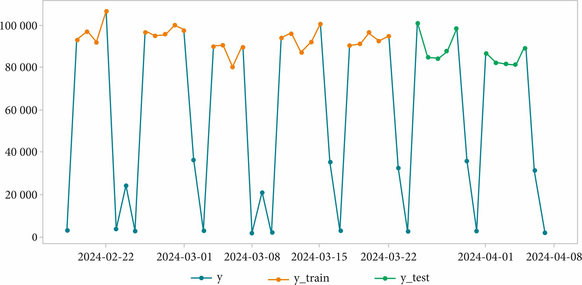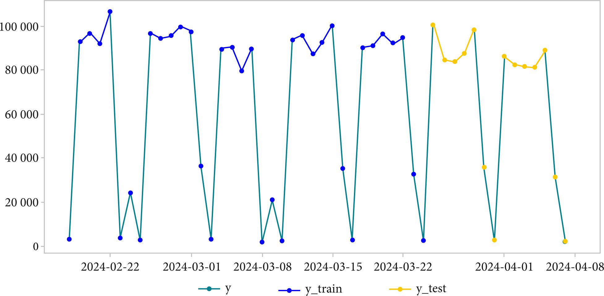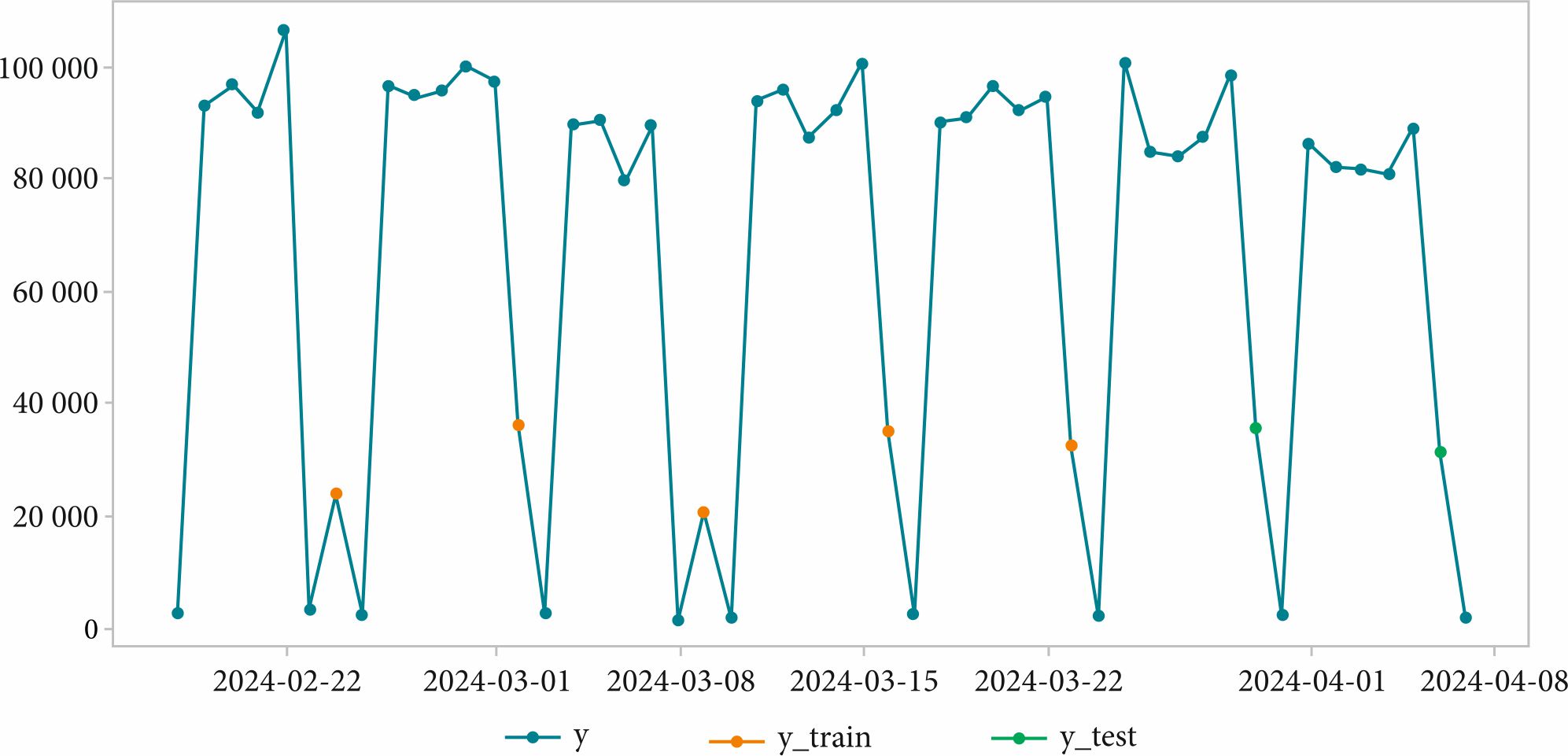 Мы разделили имеющиеся данные на три категории и выделили для каждой из них тестовую и обучающую выборки. Графически результаты этого разделения представлены на рис. 14–16. Благодаря используемому подходу мы сможем провести эффективное обучение моделей для каждой категории данных и оценить их качество на соответствующих тестовых выборках.