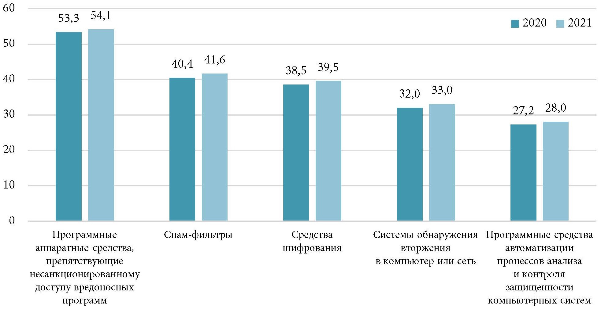 Использовались данные в территориальном разрезе: в межстрановом контексте рассматривалось применение цифровых технологий в организациях; на уровне отдельной страны (России) характеризовалось использование средств защиты информации, программных средств в организациях; на региональном уровне (на примере отдельных субъектов Северо-Западного федерального округа, далее – СЗФО) рассмотрены приоритетные отрасли и сквозные технологии для внедрения в отраслях экономики и социальной сфере, представлены кейсы, касающиеся цифровизации различных направлений деятельности.