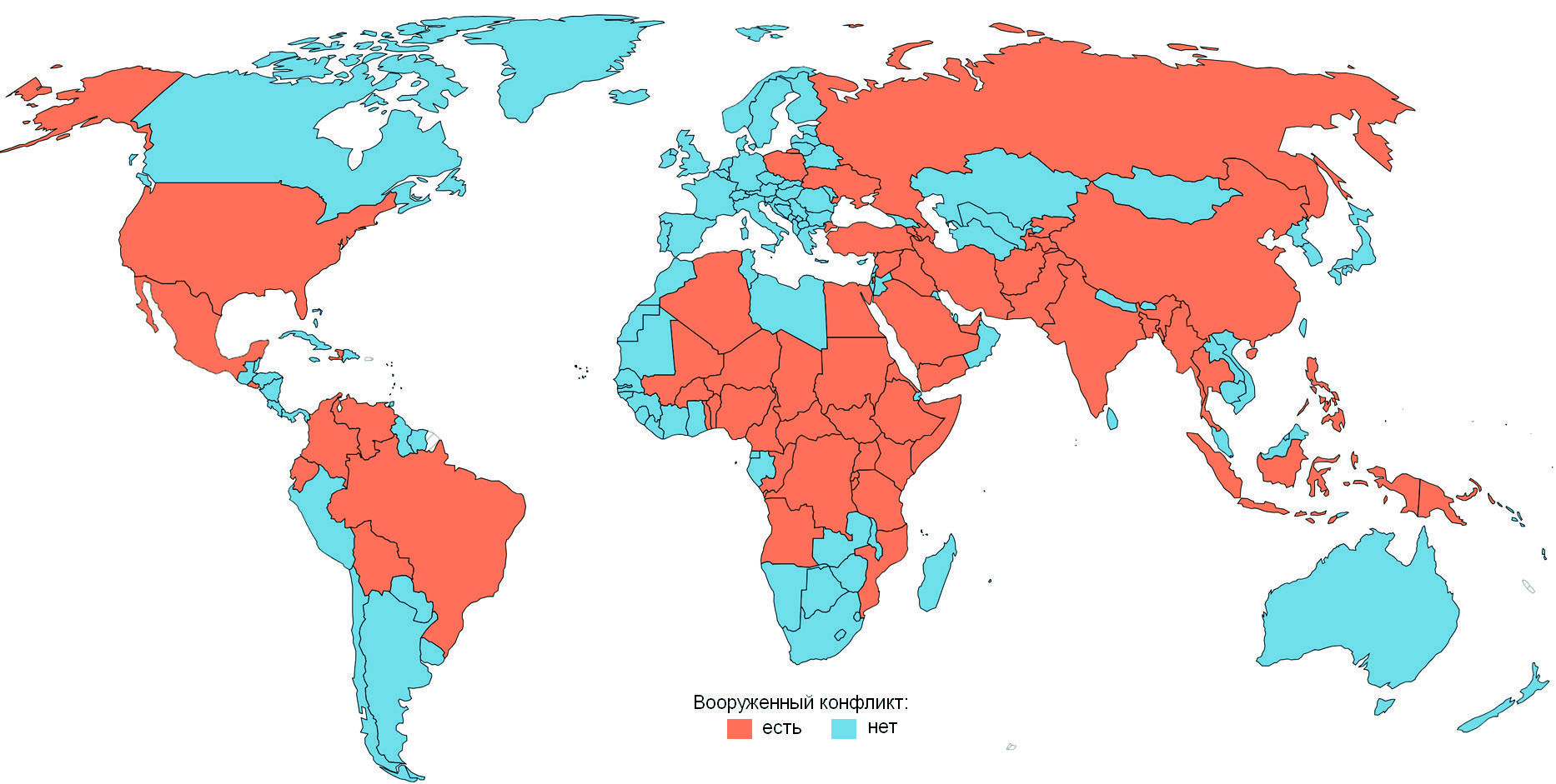 Рис. 2. Страны, которые участвовали в вооруженных конфликтах в 2022 г. [адаптировано по Uppsala Conflict Data Program].