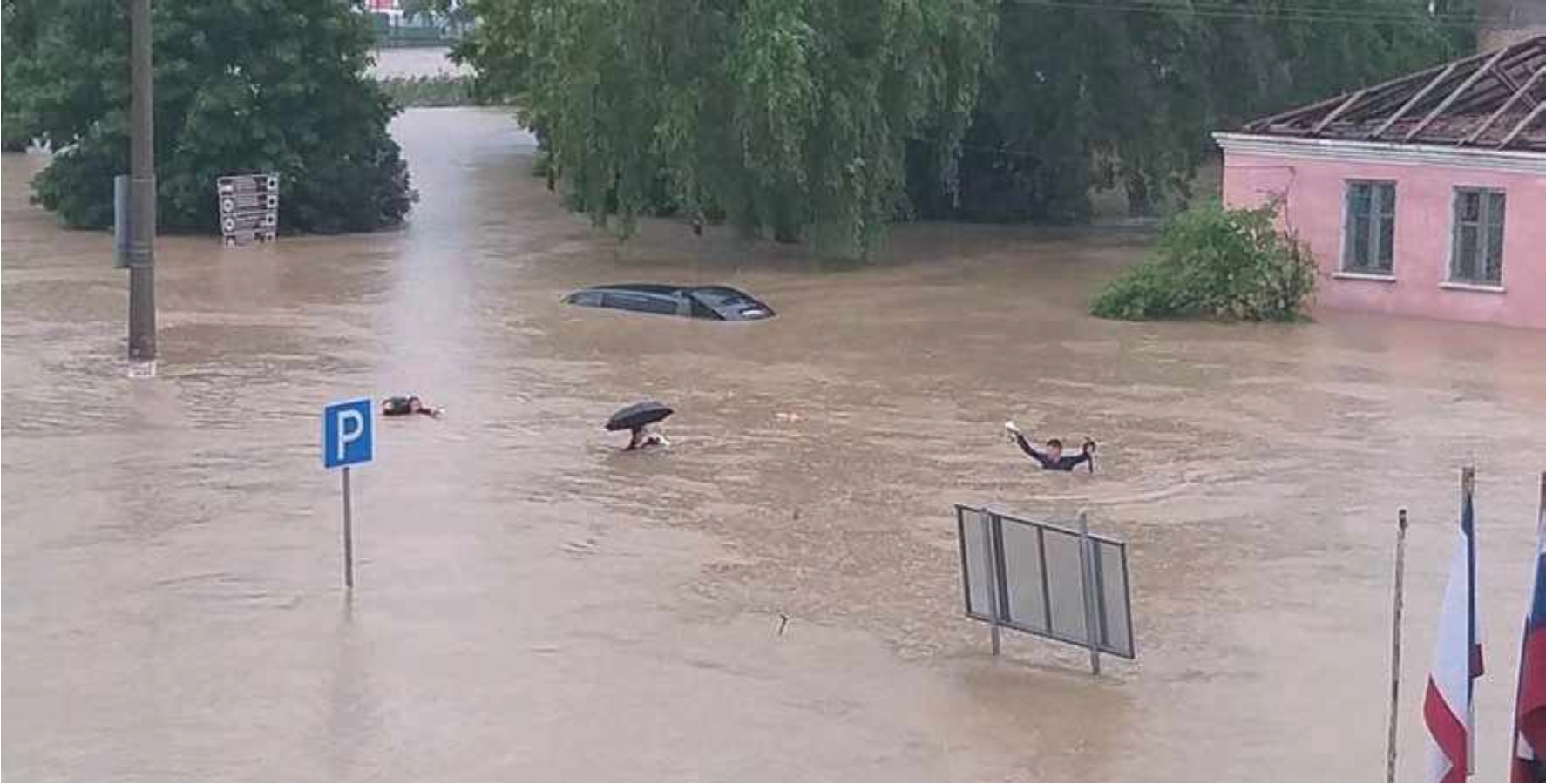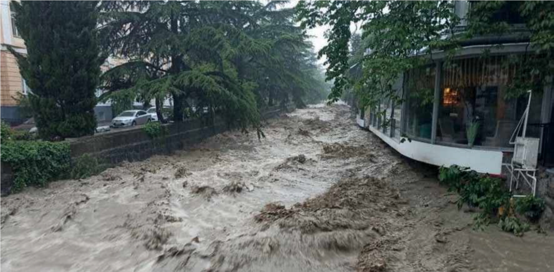 Рис. 1. Затопление центрального района г. Керчи 17.06.2021 г. [https://tj.sputniknews.ru/].