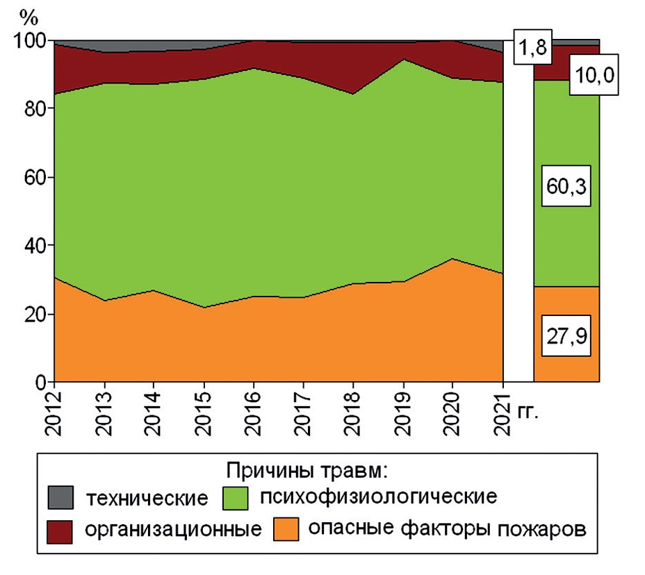 - производственного травматизма личного состава Федеральной противопожарной службы МЧС России (2012–2021 гг.) // Медико-биологические и социально-психологические проблемы безопасности в чрезвычайных ситуациях. 2023. № 1. С. 13–41. doi: 10.25016/2541-7487-2023-0-1-13-41.