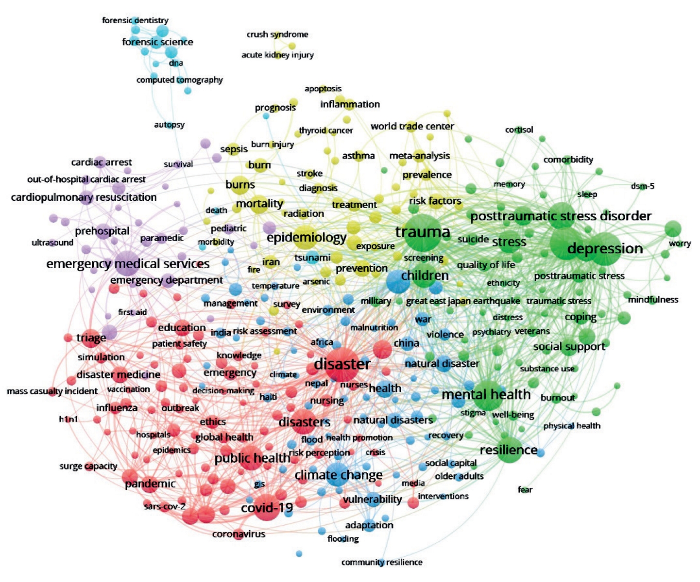 Method. The object of the study is to analyze emergency-related medical, biological and psychological problems, published within 2005–2021 and registered in the Russian Science Citation Index. The analysis was carried out using VOSviewer program, as well as a neural network using the Python programming language.