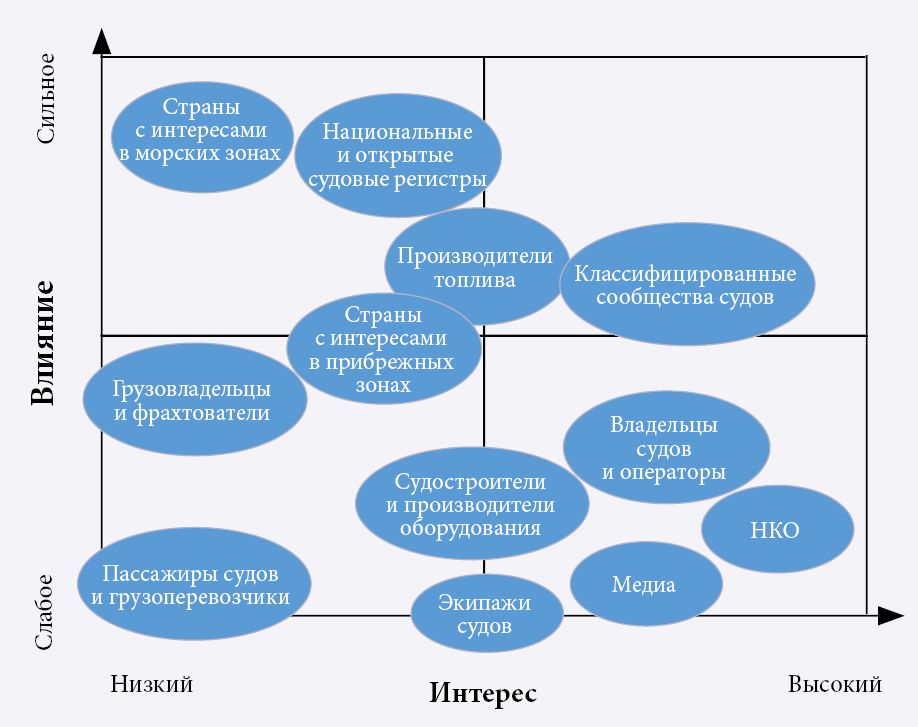 Метод анализа стейкхолдеров состоит в изучении групп, заинтересованных в реализации проекта (участвующих в разработке или влияющих на него), с целью принятия решений с учетом их позиций. Такие группы могут представлять организации из различных сфер и областей науки, экономики, государства и общества. Результатами применения метода выступают определение ключевых групп стейкхолдеров, их картирование1 и выработка рекомендаций по взаимодействию с ними для достижения искомых результатов.