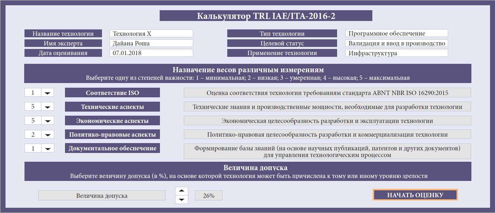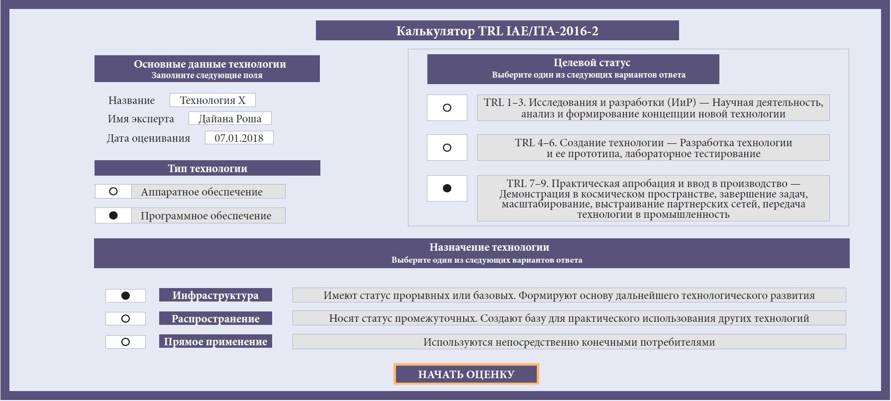 Рис. 5. Начальная страница калькулятора TRL IAE-ITA-2021-1