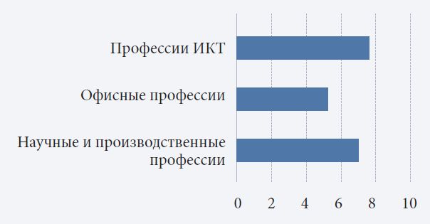Профессии, отнесенные к категории ISCO-4, — бухгалтерские, административные и офисные — также могут включать подобные задачи, но в меньшей степени.