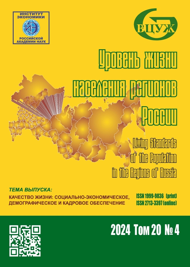 - Выпуск: Том 20, № 4 (2024): КАЧЕСТВО ЖИЗНИ: СОЦИАЛЬНО-ЭКОНОМИЧЕСКОЕ, ДЕМОГРАФИЧЕСКОЕ И КАДРОВОЕ ОБЕСПЕЧЕНИЕ