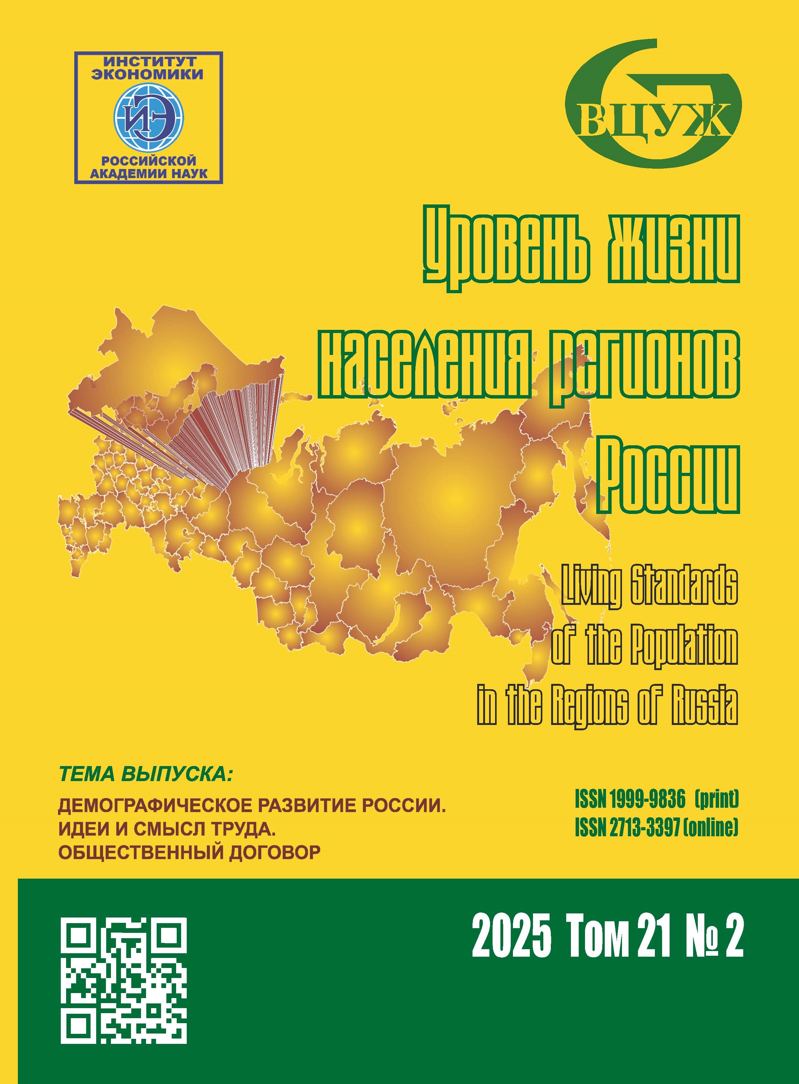 - Issue: Vol 21, No 2 (2025): ДЕМОГРАФИЧЕСКОЕ РАЗВИТИЕ РОССИИ. ИДЕИ И СМЫСЛ ТРУДА. ОБЩЕСТВЕННЫЙ ДОГОВОР