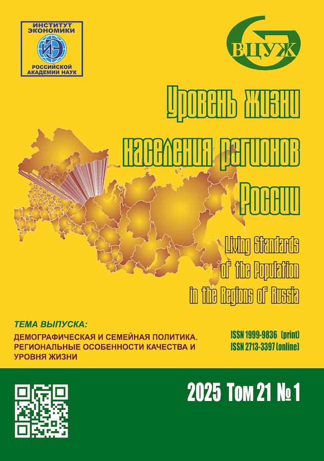 Том 21, № 1 (2025): ДЕМОГРАФИЧЕСКАЯ И СЕМЕЙНАЯ ПОЛИТИКА. РЕГИОНАЛЬНЫЕ ОСОБЕННОСТИ КАЧЕСТВА И УРОВНЯ ЖИЗНИ