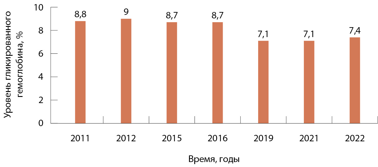 Рис. 1. Динамика гликированного гемоглобина у пациента Т. (2011–2022 гг.)