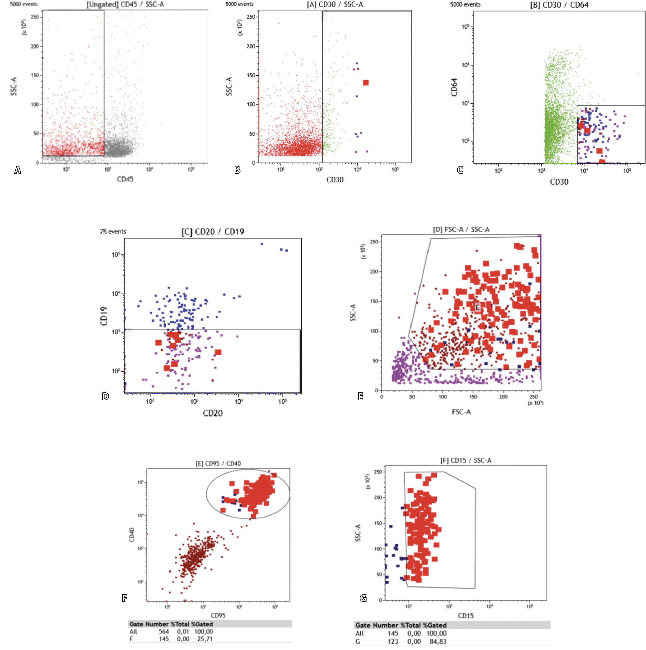 7 | 93 | CD45-CD30++CD64-CD19-CD95+CD40+CD15+ |