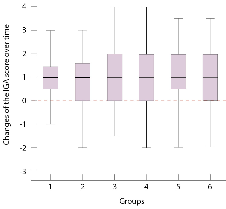 ** Статистическая значимость изменения показателя IGA в различных группах (критерий Краскела – Уоллиса)