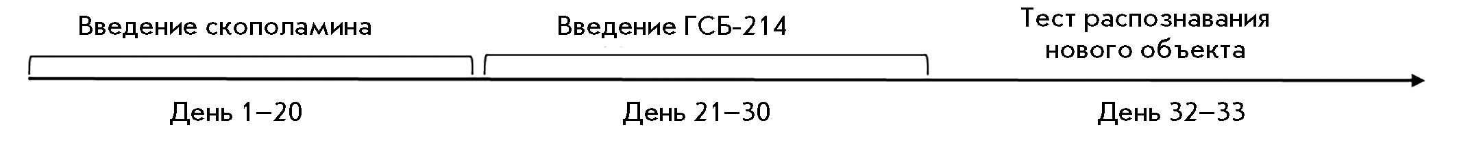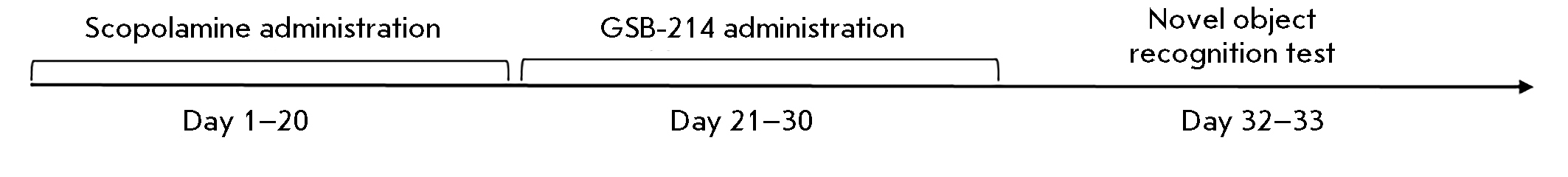 Fig. 2. The scheme of the experiment on the mnemotropic effects of GSB-214 in the scopolamine-induced AD model