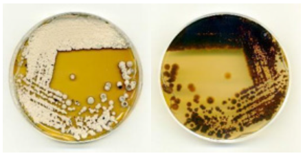 Fig. 3. Activity of the agar blocks containing S. phaeochromogenes BV-204 in the presence of E. coli lptd pDualrep2 on (a) the 3rd, (b) 6th, (c) and 9th days of growth
