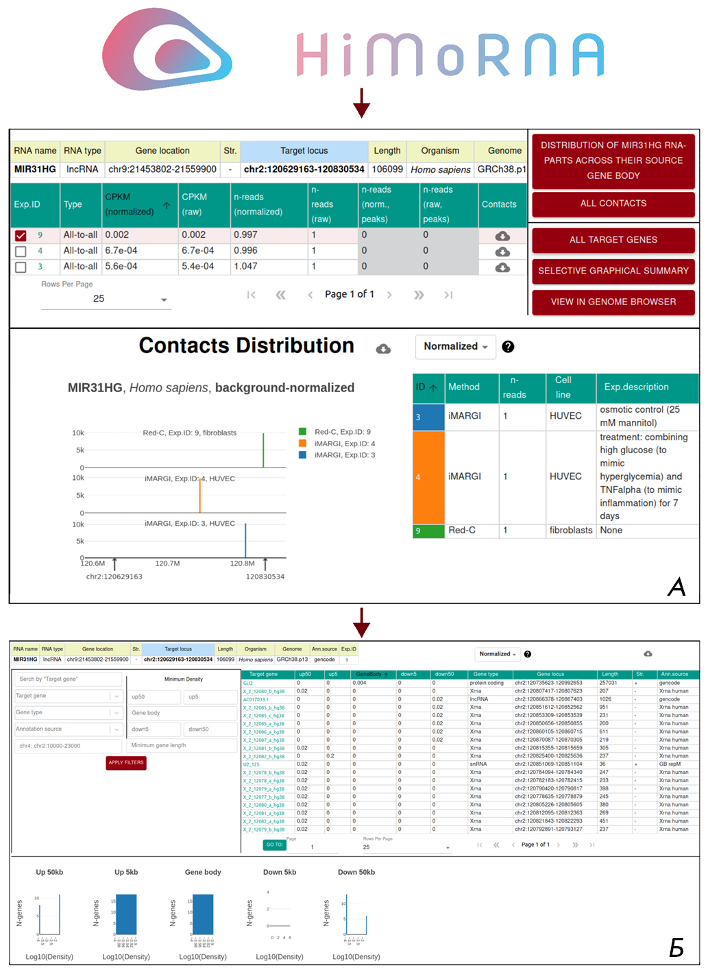 Improvement of the HiMoRNA web interface and database, software development, I.I.; adaptation of the RNA-Chrom web resource for integration with HiMoRNA, gene name correspondence, project administration, G.R.; use cases, G.R. and D.M.; general supervision, A.M. and Yu.M.; manuscript preparation, I.I., G.R., D.M., A.M., and Yu.M.