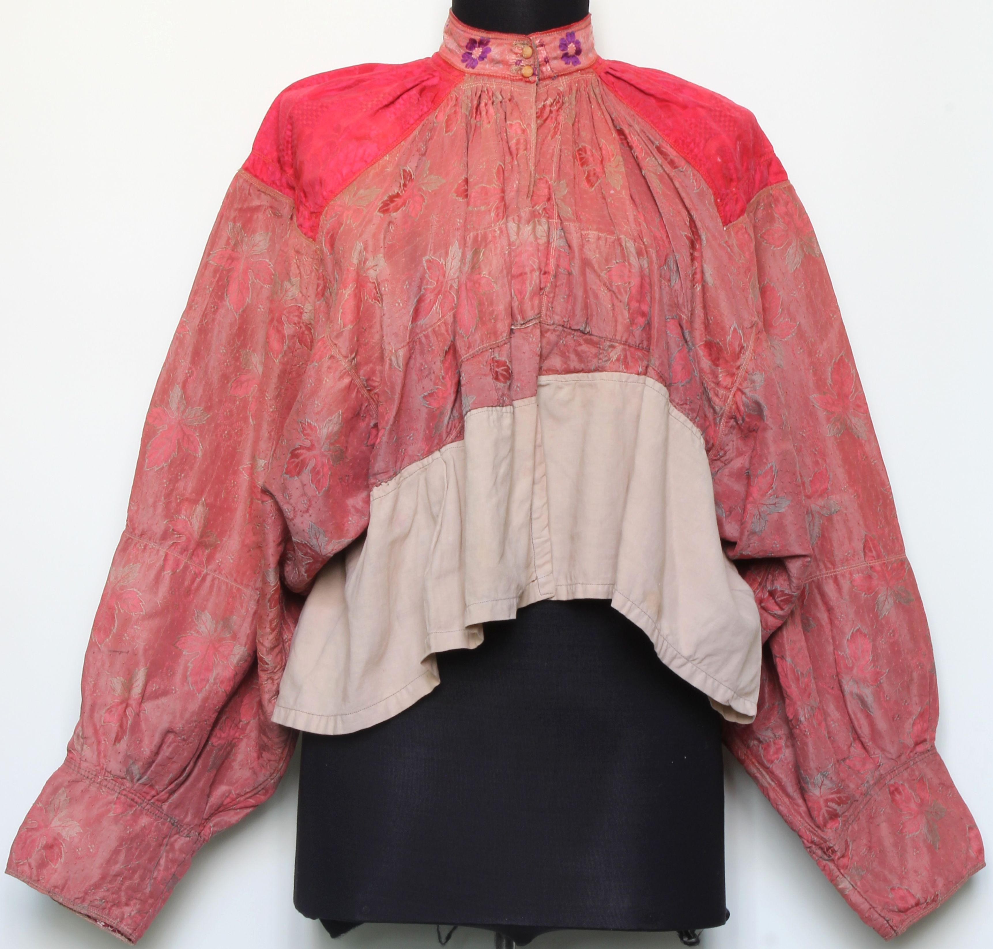 Как отмечают информанты, японка представляет собой более легкую и удобную одежду, которую носили как девушки, так и замужние женщины: «Она тоже старинная. Летом, когда жарко, а сос-то, хотя и широкий, но все равно шили тесно. А японку надевали летом, когда жарко, и чтобы шея дышала свободно. Японки носили и замужние женщины, и девушки, просто разного цвета»8. (Здесь и далее в статье стилистика и грамматика ответов респондентов сохранены. – Ред.). Согласно воспоминаниям старожилов, японка входила в состав исключительно девичьего праздничного костюмного комплекса. В настоящее время японка представлена как в девичьем, так и в женском праздничном наряде.
