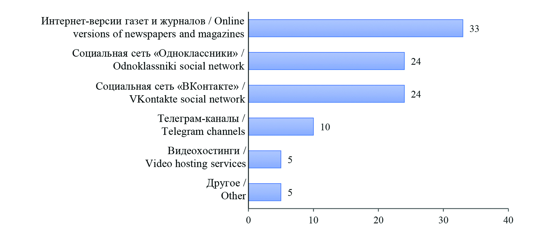 Анализ ответов показывает крайне низкое потребление контента на эрзянском и мокшанском языках, размещенного в телеграм-каналах и видеохостингах, несмотря на всевозрастающую популярность указанных ресурсов в русскоязычном сегменте.