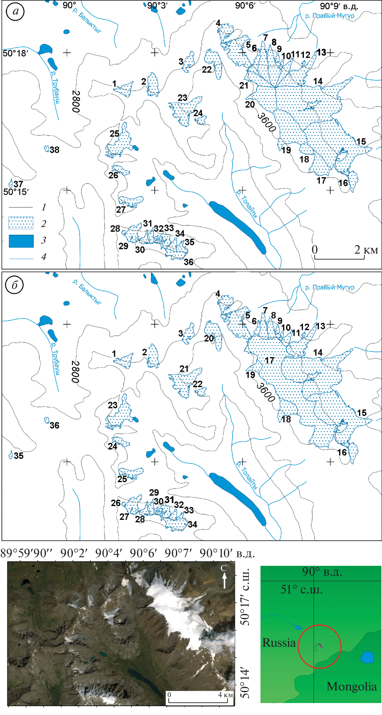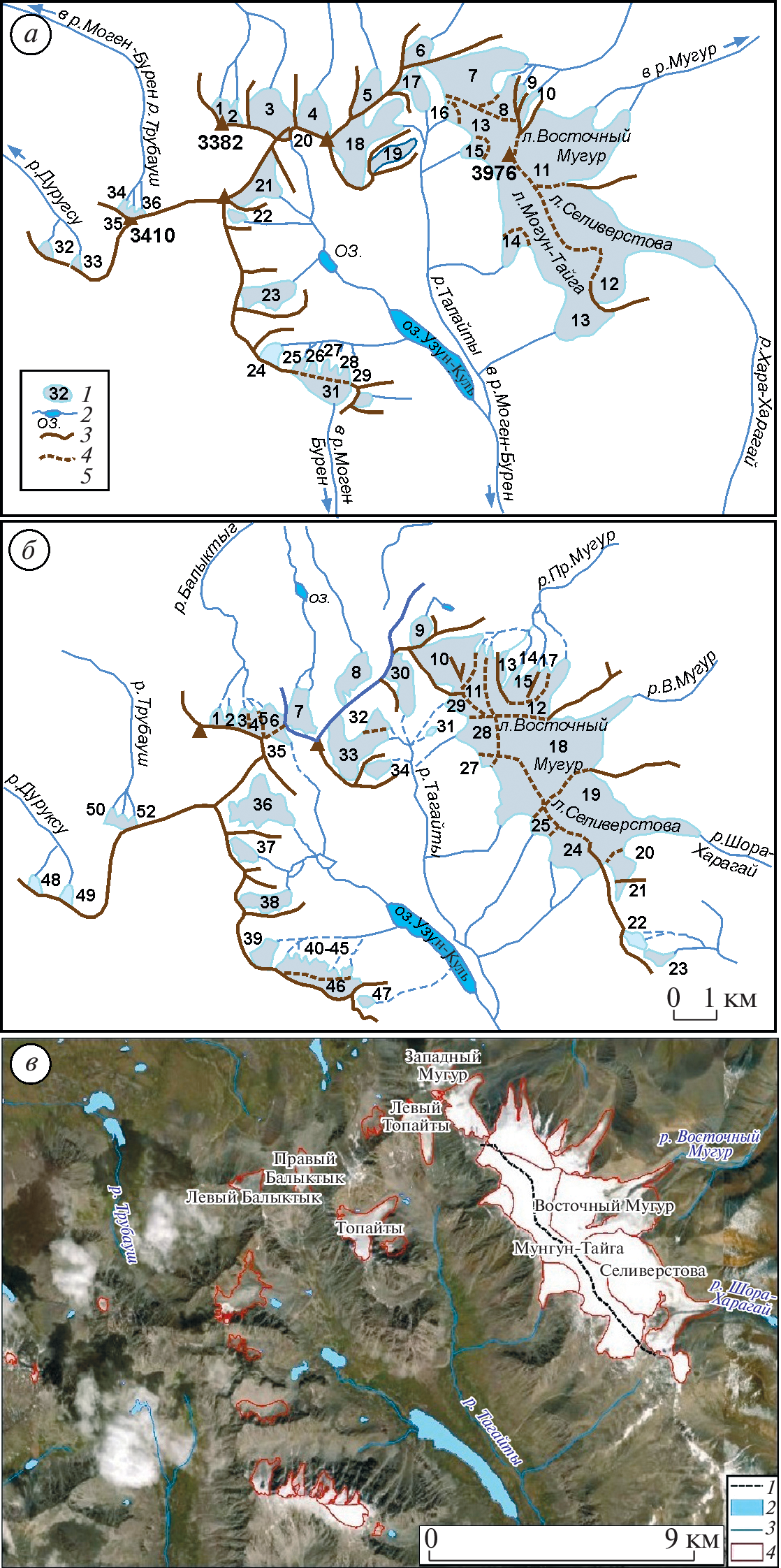 - Ganyushkin D.A., Chistyakov K.V., Volkov I.V., Bantcev D.V., Kunaeva E.P., Andreeva T.A., Terekhov A.V., Otgonbayar D. Present glaciers of Tavan Bogd massif in the Altai Mountains, Central Asia, and their changes since the Little Ice Age. Geosciences. 2018, 8 (11): 414. https://doi.org/10.3390/geosciences8110414