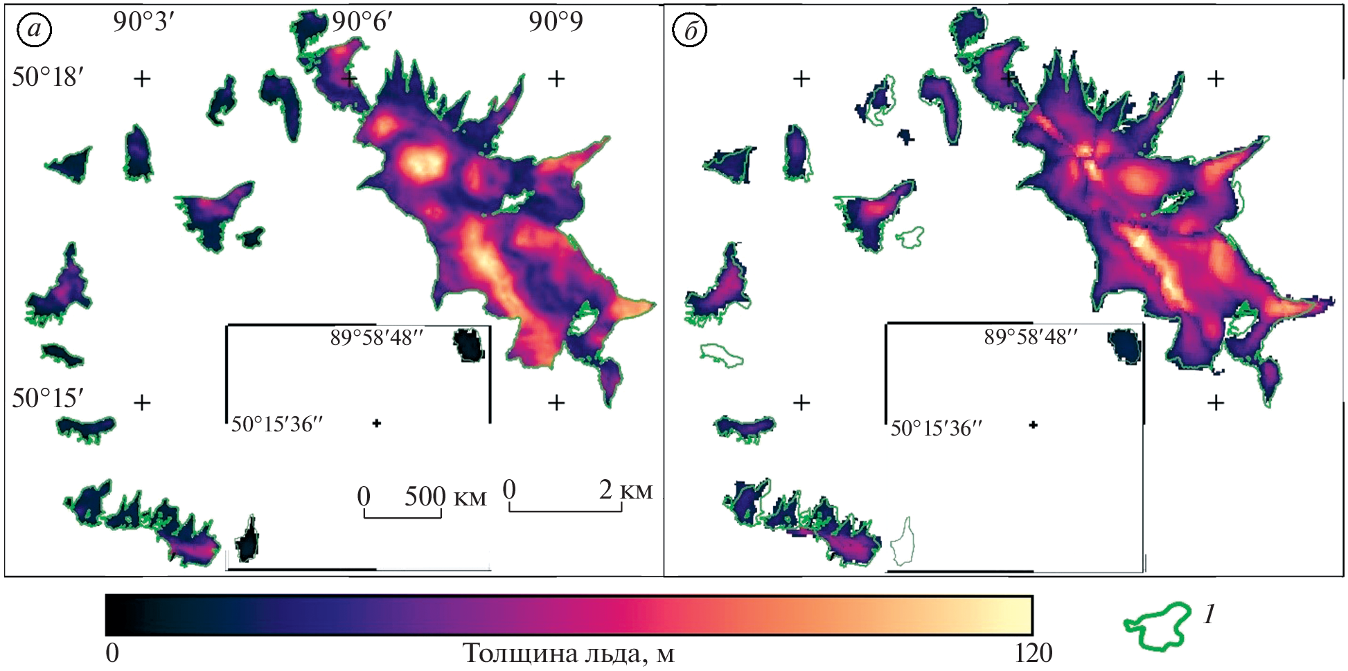- Khromova T.E., Nosenko G.A., Glazovsky A.F., Muravyev A.Ya., Nikitin S.A., Lavrentiev I.I. New Catalog of glaciers of Russia according to satellite data (2016–2019). Led i Sneg. Ice and Snow. 2021, 61 (3): 341–358 [In Russian]. https://doi.org/10.31857/S2076673421030093.