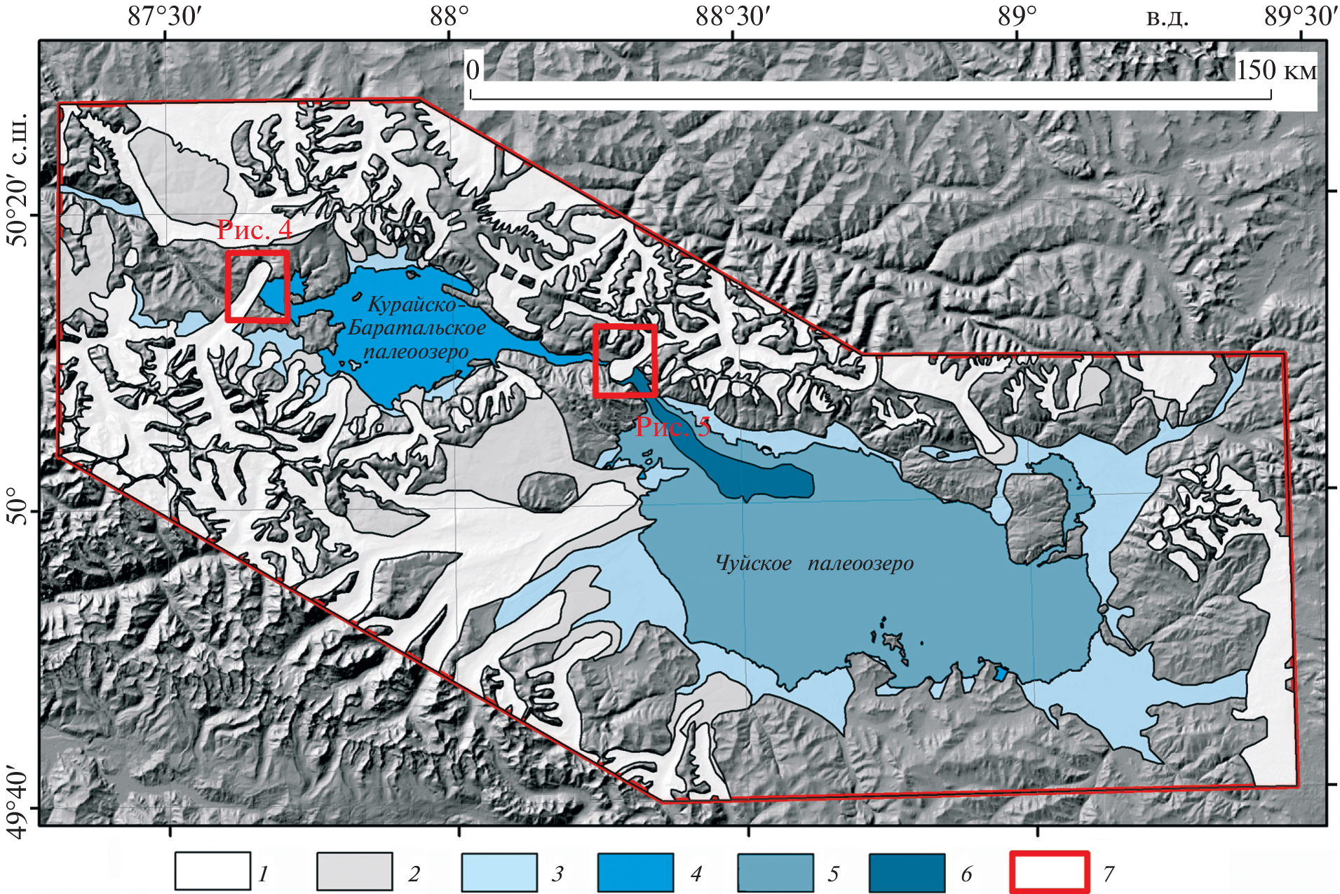 The palaeogeographic scheme of the distribution of glaciers and ice-dammed lakes in the Altai during the last global glaciation (MIS-2) was compiled based on a detailed large-scale geomorphological survey. Analysis of geomorphological traces of glaciers of this time indicates that they occupied smaller areas than those of the first Late Pleistocene glaciation. By this means, the ice dams created by them were smaller that resulted in small sizes of ice-dammed lakes. The preserved levels of terraces indicate that during the first Late Pleistocene glaciation in the Kurai-Chuya depression system the ancient lake was the only one with a level of 2250 m and a total volume of 1.70 km3. During the second Late Pleistocene glaciation in the south-east Gorny Altai, another separate lake existed which was the Bartal-Kurai Lake with a level of 1700 m and a volume of 45 km3. This lake was dammed by the Mashey Glacier, which descended from the northern slopes of the North Chuaya Range. In the Chuya Depression, the existence of a landslide-dammed lake with a volume of 0.7 km3 and a level 1.750 m has been found. Its formation was not associated with glaciers of the MIS-2 stage. Direct dating of the last ice-dammed lake in the Chuya Depression with a level of 1950 m and a volume of 140 km3 has not yet been determined. This lake was dammed by the Kuehtanar Glacier, which descended from the southern slope of the Kurai ridge. The volume of ice-dammed waters of the MIS-2 time was an order of magnitude smaller than it was in the first Late Quaternary glaciation. This explains the much lower intensity of erosive and accumulative processes associated with the mega-flood occurred due to the breakthrough of the lakes during MIS-2.