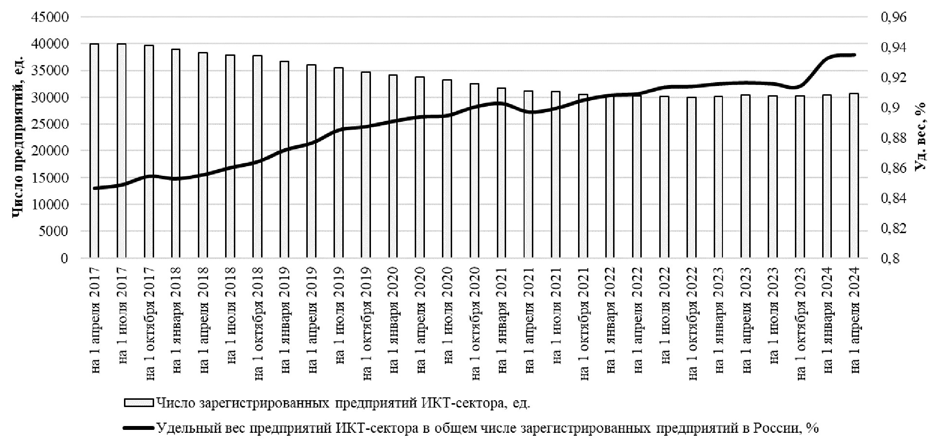 Несмотря на явную тенденцию сокращения числа IT-компаний, отмечается рост доли компаний данного сектора в общем числе зарегистрированных в России. Такая тенденция вызвана структурной перестройкой, сменой стратегических направлений развития бизнеса, повышением роли цифровизации и востребованности IT-профессий, действенными инструментами технологических стартапов.
