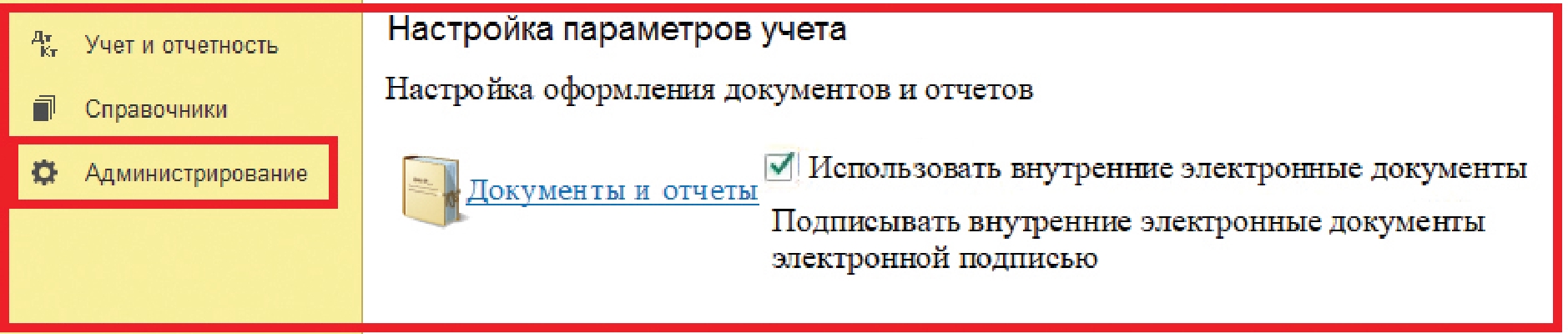 Рисунок 1. Настройка применения внутреннего электронного документооборота в программе «1С: Бухгалтерия государственного учреждения»