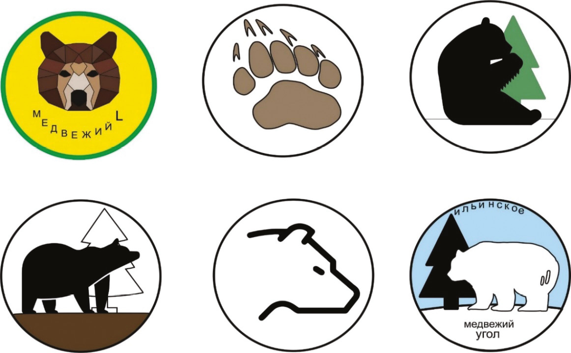 На формирование имиджа туристской территории направлен проект развития внешних связей и продвижения рекреационной зоны. Предлагаемые варианты логотипа прибрежной рекреационной зоны «Медвежий угол» представлены на рисунке 2. Возможно исполнение символа в традициях Шемогодской резьбы по бересте. Вместе с тем предлагается использование слогана для формирования и продвижения комплексного образа прибрежной рекреационной зоны «Медвежий угол»: «Реально угол. Реально медвежий». Данный слоган отражает направленность территории на активный отдых, ориентацию на молодых активных туристов и имеет современное звучание.